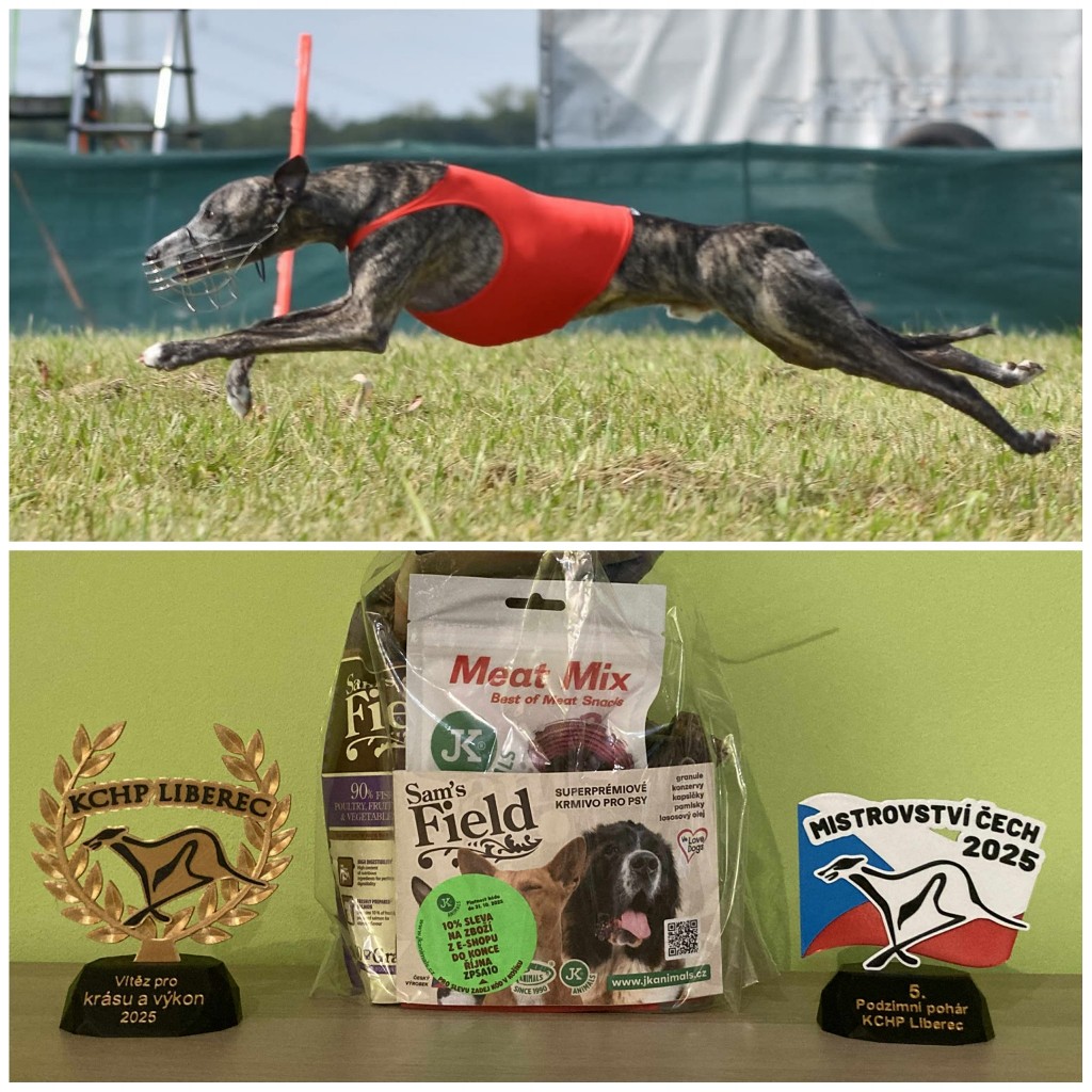Knight of Darkness de Wallrock si vyběhal na coursingu v Chrastavě 5. místo z 20 psů v CACIL třídě. A zároveň po sečtení bodů z výstavy se stal i VÍTĚZEM PRO KRÁSU A VÝKON 2025